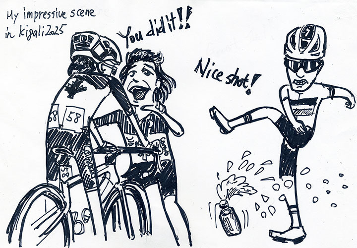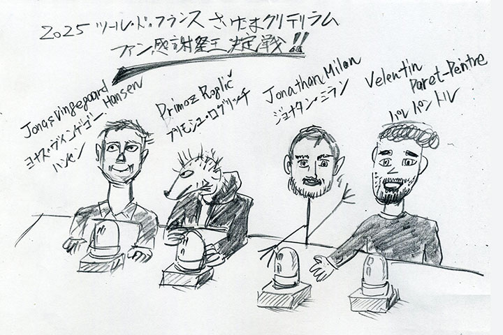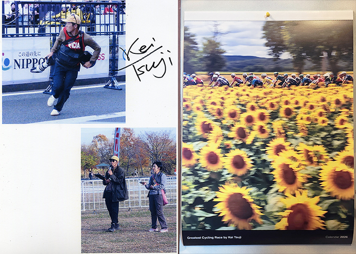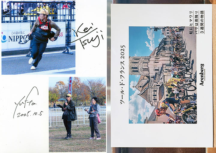 昨日は辻啓さんのカレンダーとサインをいただき、今日は在廊している小俣雄風太さんのアランベール編集部のツール・ド・フランス2025とサインをいただく。