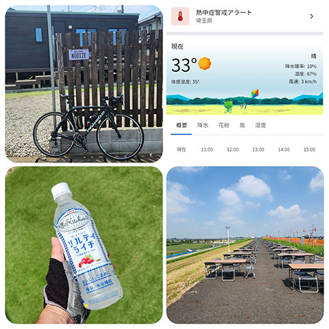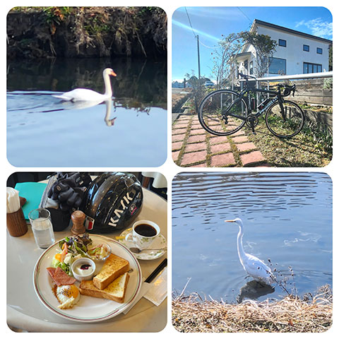 手賀沼(手賀カフェ)→柏の葉公園→利根運河(はれるやカフェは休店)→江戸川サイクリングロード→ノダイズ→竹林カフェ風。