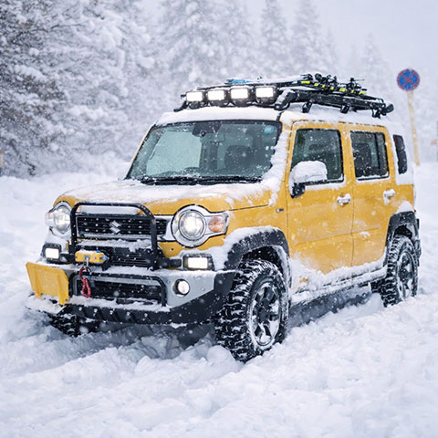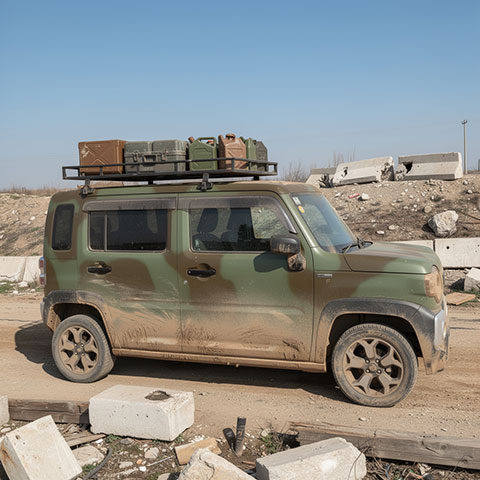 ハスラー自体は形状は変化させずカーキャリアーを装着し、迷彩塗装を施し、泥や砂の汚れを加えています。